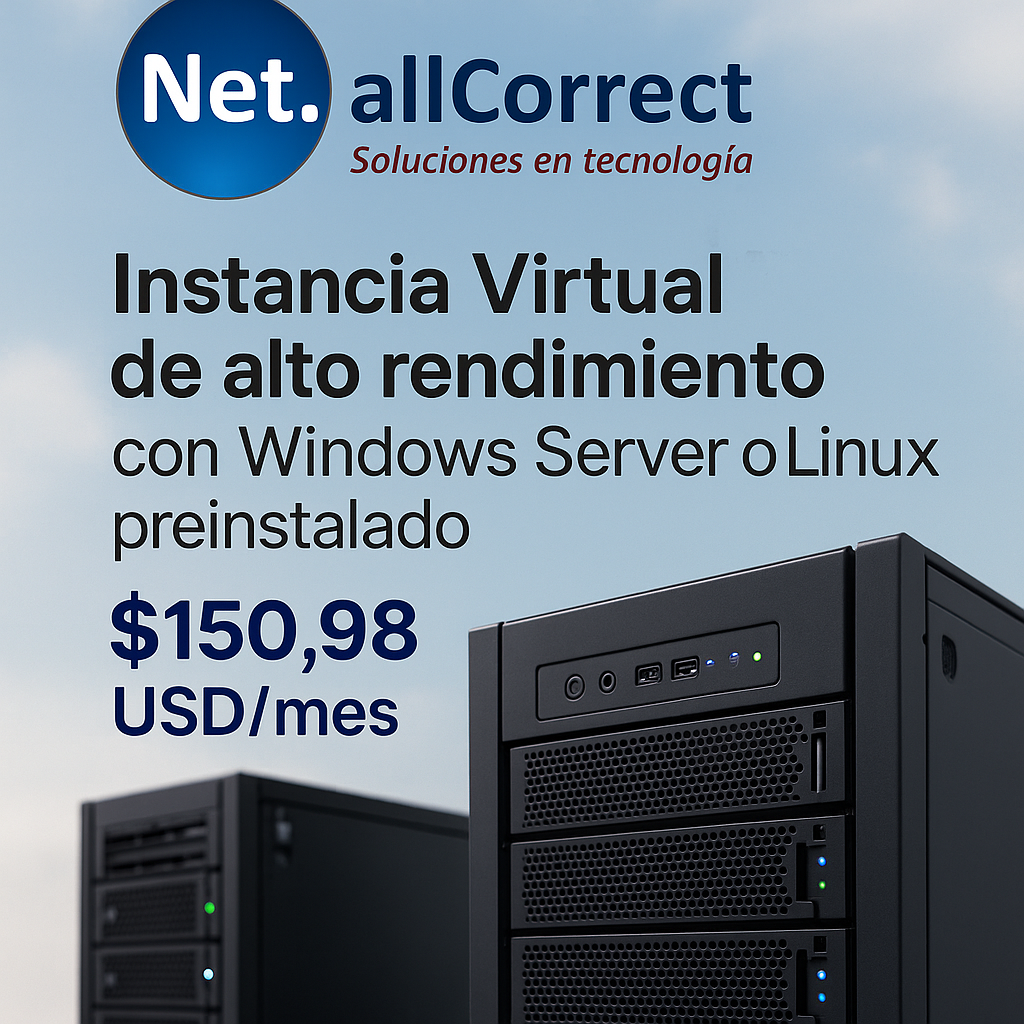 Ideal para pymes, desarrolladores o entornos corporativos, esta instancia garantiza potencia, estabilidad, escalabilidad y soporte continuo con administración técnica especializada de Net Allcorrect | VMOK Cloud.
